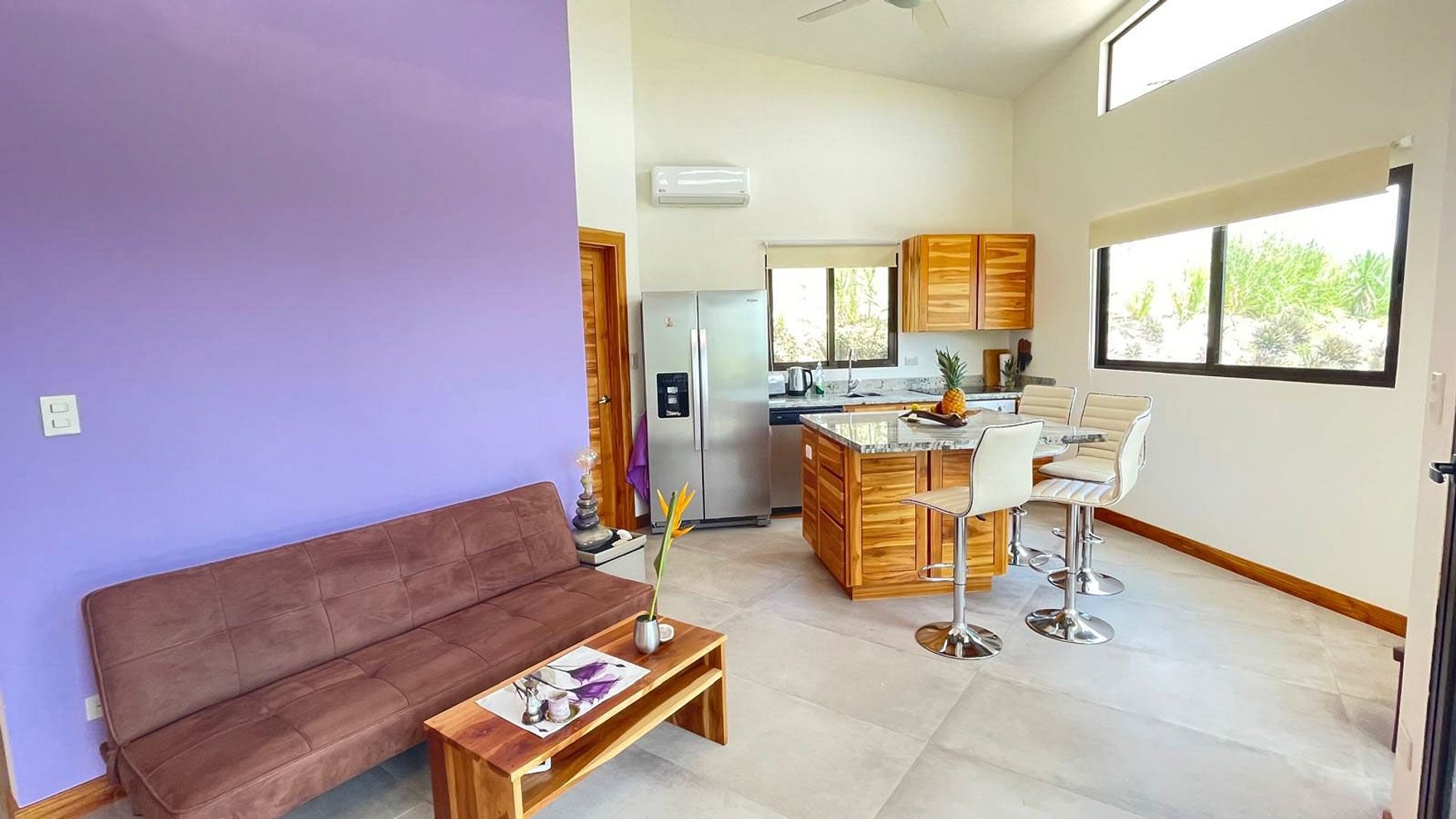 It is very common to see birds and butterflies, and occasionally howler monkeys also pass through. The villa includes two covered parking spaces and a large gas grill for outdoor cooking. This villa is ideal for families, couples, or remote workers looking for a retreat in nature.
