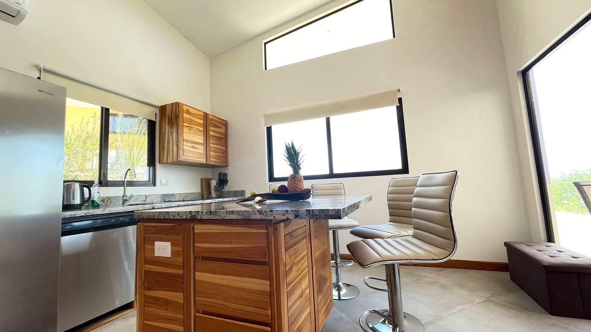 It is very common to see birds and butterflies, and occasionally howler monkeys also pass through. The villa includes two covered parking spaces and a large gas grill for outdoor cooking. This villa is ideal for families, couples, or remote workers looking for a retreat in nature.