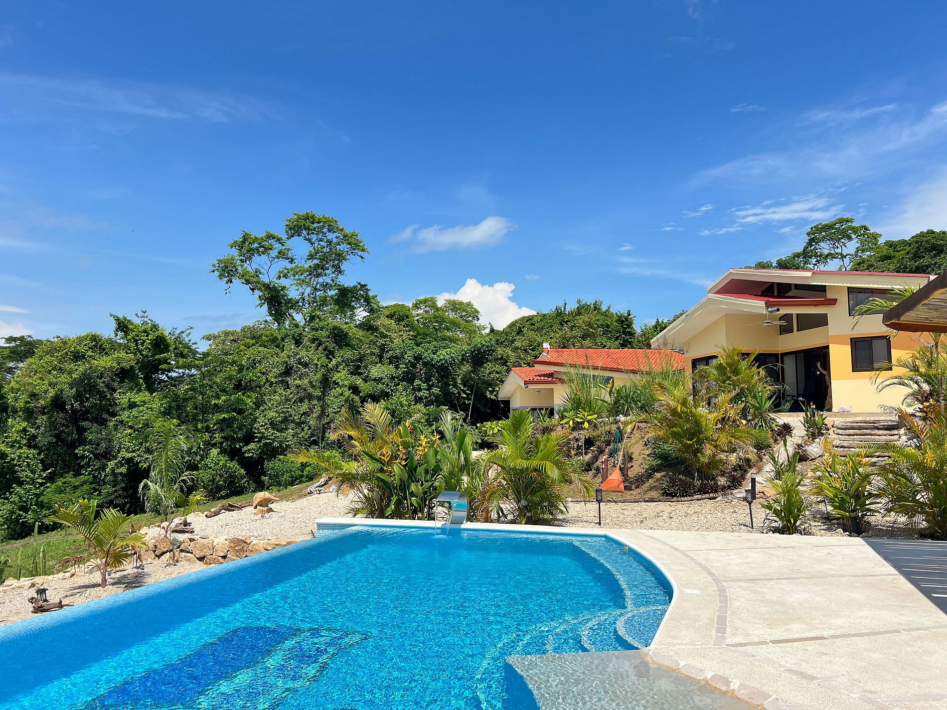 This villa is located in a peaceful setting between mountains, with views of the Gulf of Nicoya, and just 5 minutes from the beach. It is only 3 kilometers from the ferry station connecting to Puntarenas, making day trips convenient. Its location provides the peace and privacy needed to disconnect, while also being close enough to explore tourist destinations such as Santa Teresa, Montezuma, Sámara, and other areas of the Nicoya Peninsula. We also recommend the Isla Tortuga snorkeling tour, which departs from our beach.
