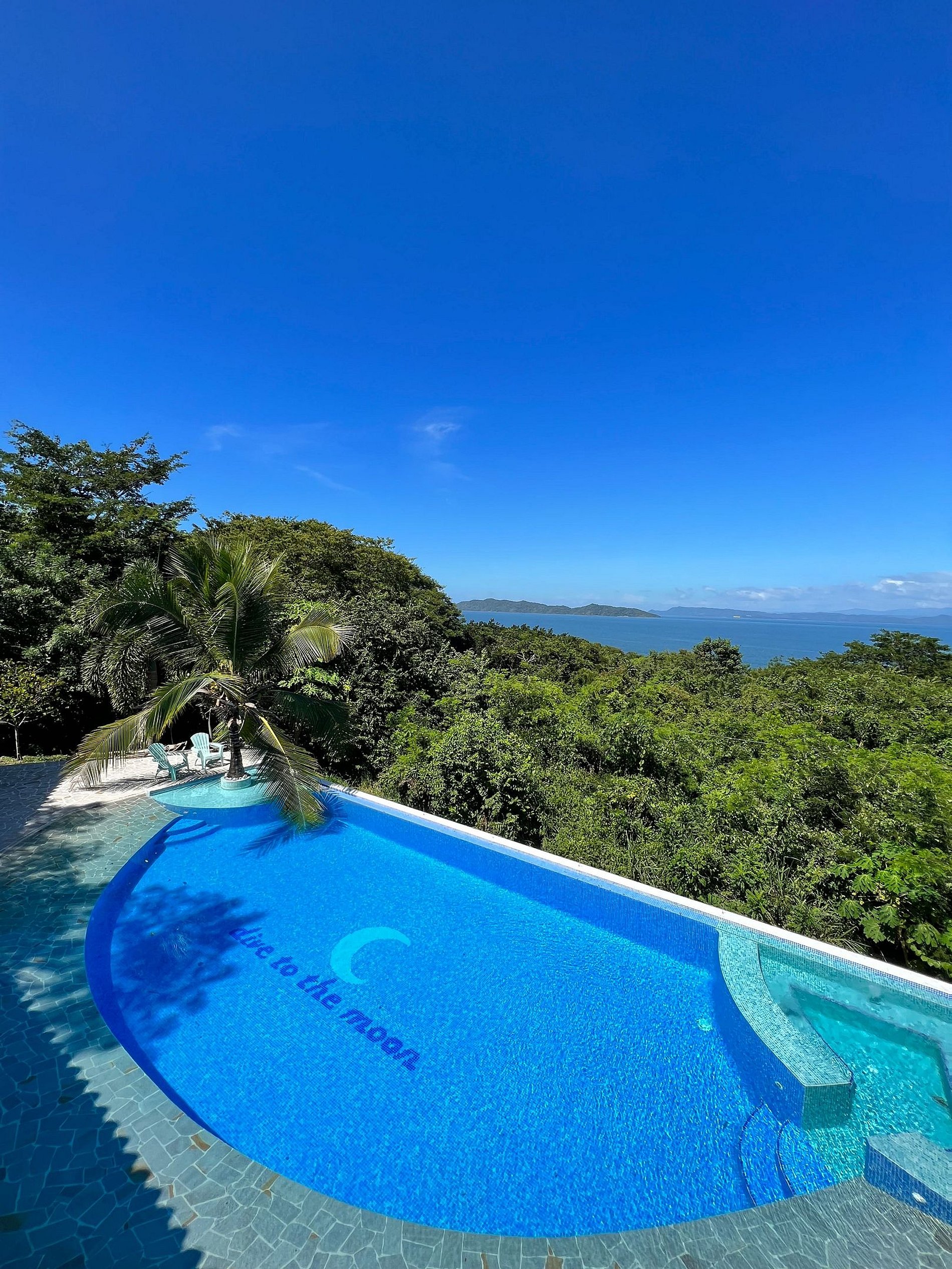 Spacious, private, and comfortable villa with 4 bedrooms and 2.5 bathrooms. It features a king-size bed in the master, a queen-size bed in the second and third rooms, and two queen-size beds in the upstairs room. Includes a smart TV, internet, and a fully equipped kitchen. Sliding doors open to a private infinity pool with stunning ocean views.