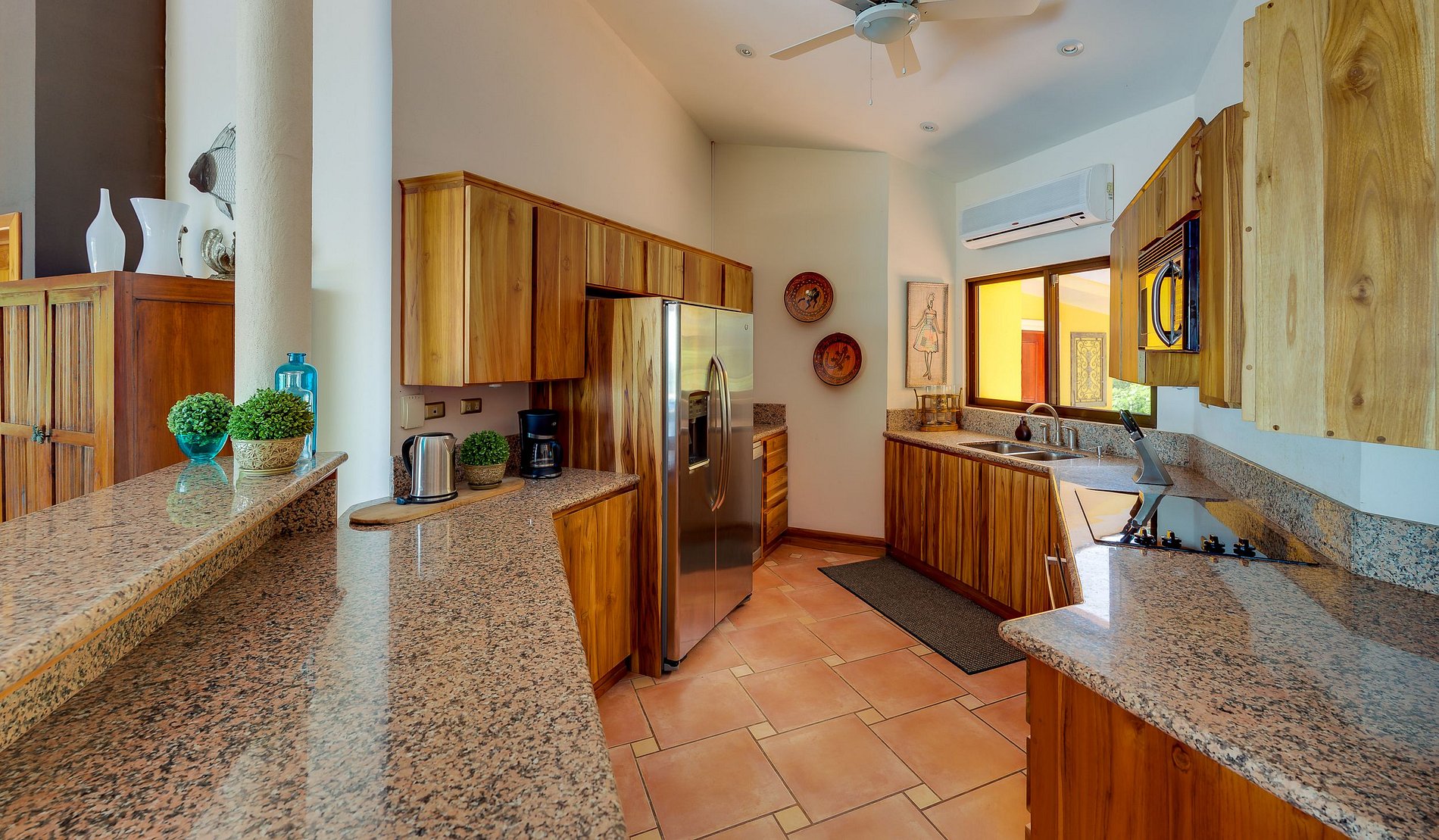 Villa muy cómoda y privada con 3 habitaciones con aire acondicionado, 2.5 baños y un walk-in closet en la habitación principal. Tiene una cama king en el cuarto principal y una cama queen en cada uno de los otros dos cuartos. Incluye smart TV, internet de alta velocidad y una cocina completamente equipada. Las puertas corredizas conducen a una piscina infinita privada con hermosas vistas a las islas.