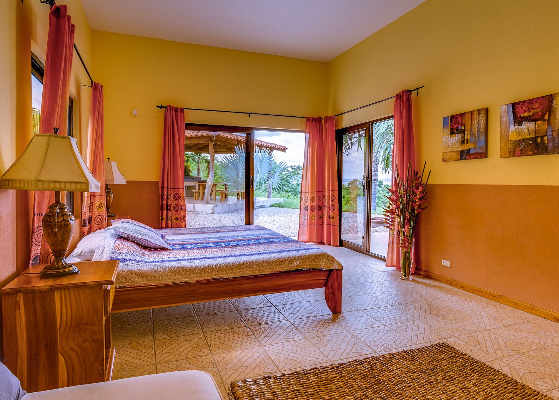 Villa muy cómoda y privada con 3 habitaciones con aire acondicionado, 2.5 baños y un walk-in closet en la habitación principal. Cuenta con una cama king en el cuarto principal y una cama queen en los otros dos cuartos. Incluye smart TV, internet de alta velocidad y una cocina totalmente equipada, y un rancho con BBQ. Las puertas corredizas llevan a una piscina infinita privada con vistas a las islas.